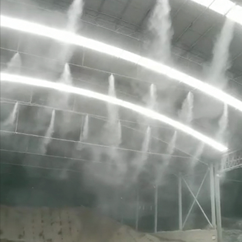 Spray dust removal equipment uses high-pressure pump to spray water from the nozzle. Atomized particles float in the surrounding air, fuse with dust particles in the air and fall under the action of self weight, so as to achieve multiple effects such as increasing air humidity, reducing ambient temperature and reducing dust. A comprehensive intelligent monitoring system is realized through dust sensor, magnetic field induction of loading vehicle and time control, which can achieve the dust suppression effect under various conditions.