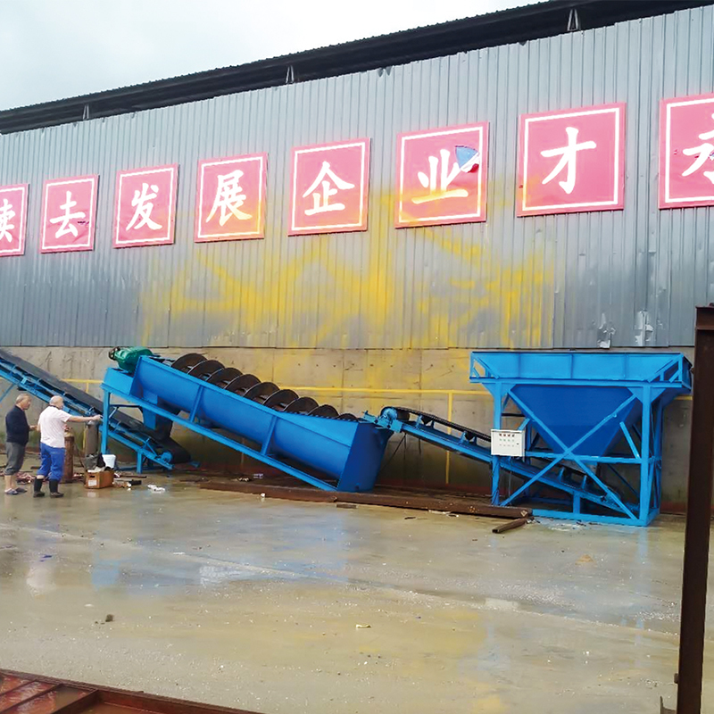 Spiral stone washing machine separates dust and impurities from sand by using the characteristics that particles with different particle sizes and densities have different sedimentation rates in the fluid. Particles with fine particle size and low density have slow sedimentation rates, while particles with large particle size and high density have fast sedimentation rates. Under the uniform stirring of the spiral plate, the purpose of filtering water, removing impurities and improving transportation is achieved.